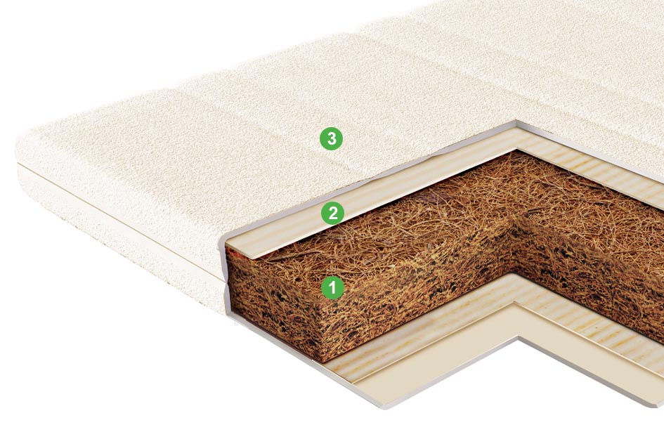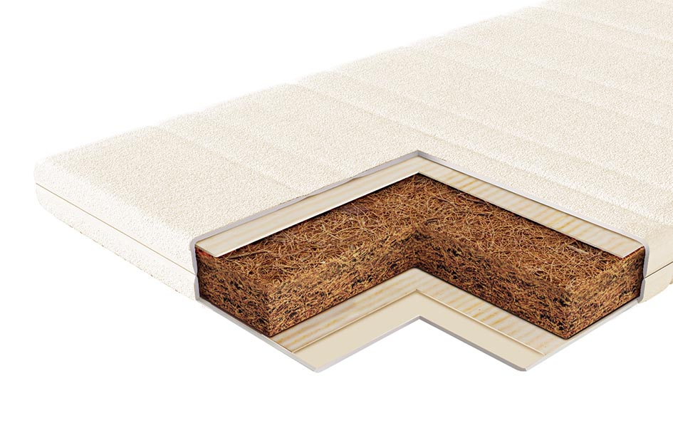 Натуральный материал, состоящий из спрессованных волокон кокосового ореха, полностью пропитанных латексом. Слои из прочной и долговечной кокосовой койры используются для придания матрасу дополнительной жесткости.