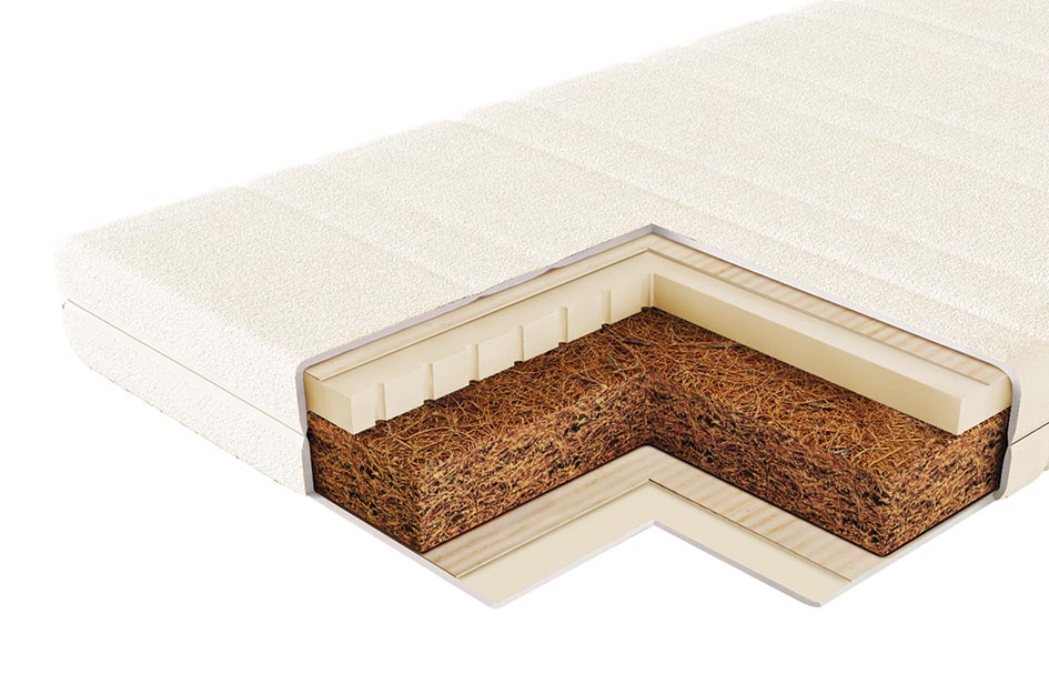 Натуральный материал, состоящий из спрессованных волокон кокосового ореха, полностью пропитанных латексом. Слои из прочной и долговечной кокосовой койры используются для придания матрасу дополнительной жесткости.