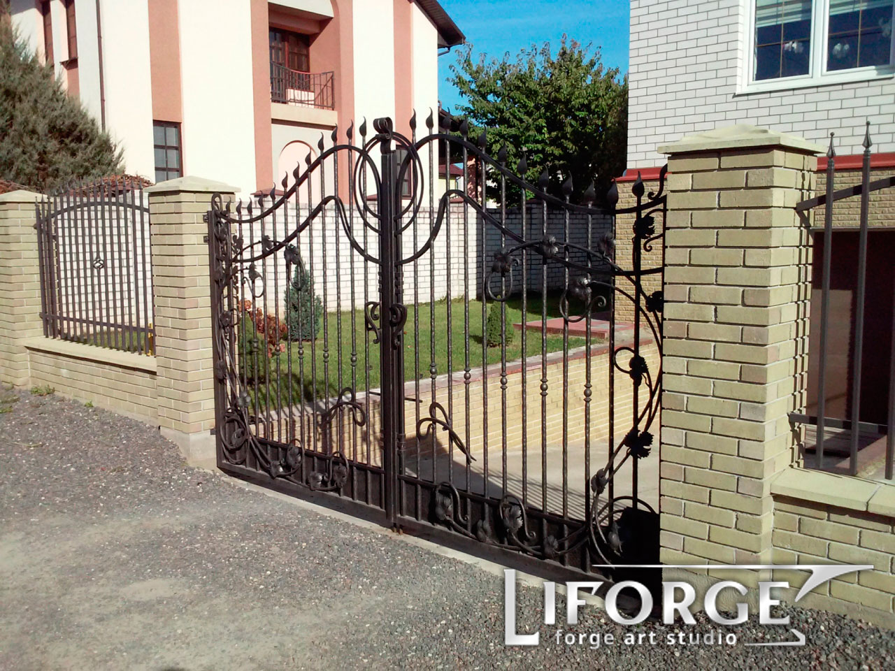Компания «Liforge» более 10 лет специализируется на изготовлении всех видов кованых изделий и ворот, заборов, калиток. Мы предлагаем заказать кованые ворота различного уровня сложности, изготовленные по любым макетам и запросам. Стильные и оригинальные, они прекрасно впишутся в любой загородный участок.