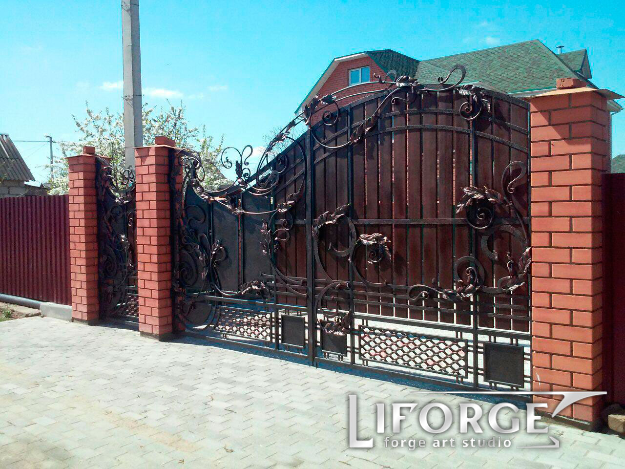Компания «Liforge» более 10 лет специализируется на изготовлении всех видов кованых изделий и ворот, заборов, калиток. Мы предлагаем заказать кованые ворота различного уровня сложности, изготовленные по любым макетам и запросам. Стильные и оригинальные, они прекрасно впишутся в любой загородный участок.