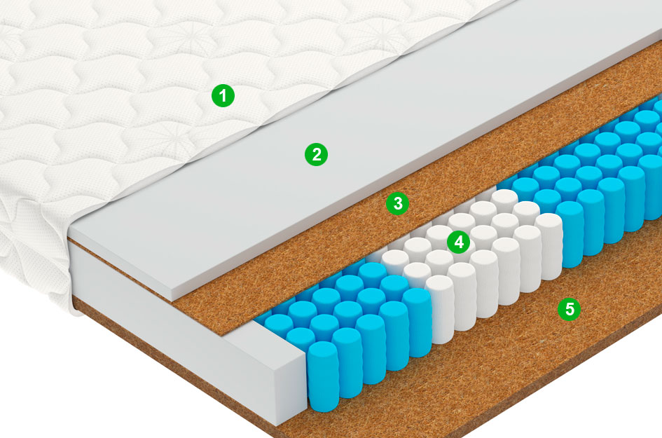 Натуральный материал, состоящий из спрессованных волокон кокосового ореха, полностью пропитанных латексом. Слои из прочной и долговечной кокосовой койры используются для придания матрасу дополнительной жесткости.