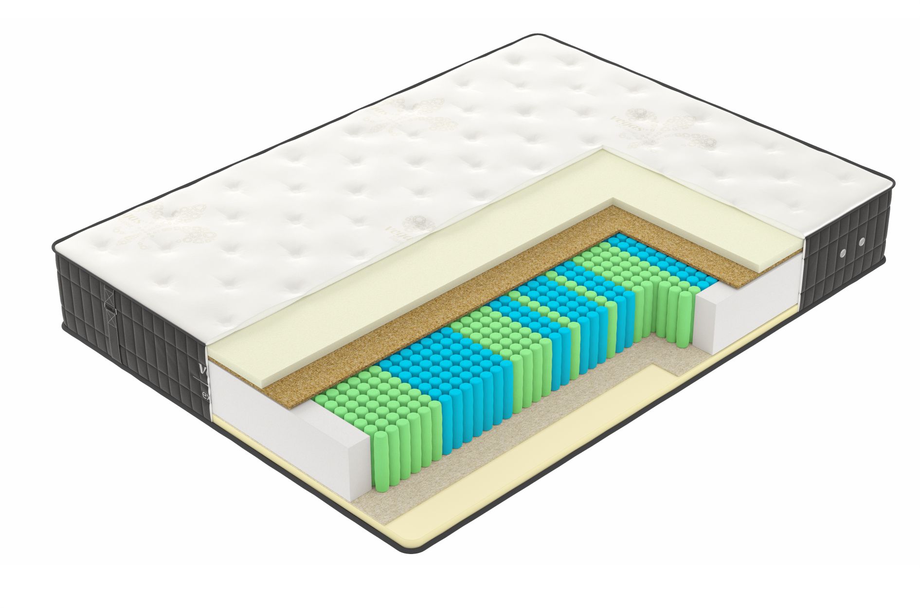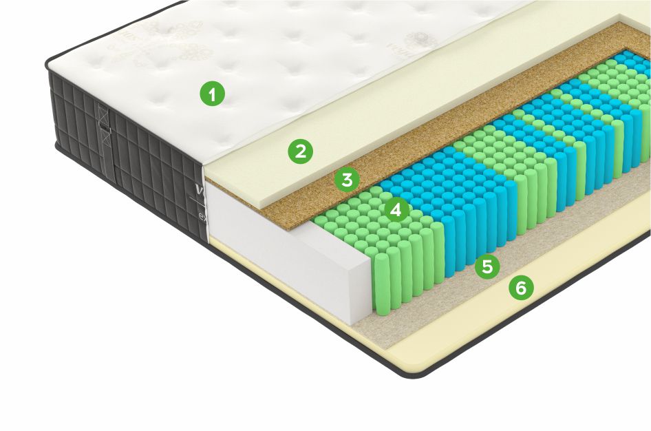 Система кроя и пошива цельного чехла, благодаря которой он плотно и бережно облегает внутреннее наполнение матраса, дополнительно защищая слои от трения и смещения в процессе эксплуатации.