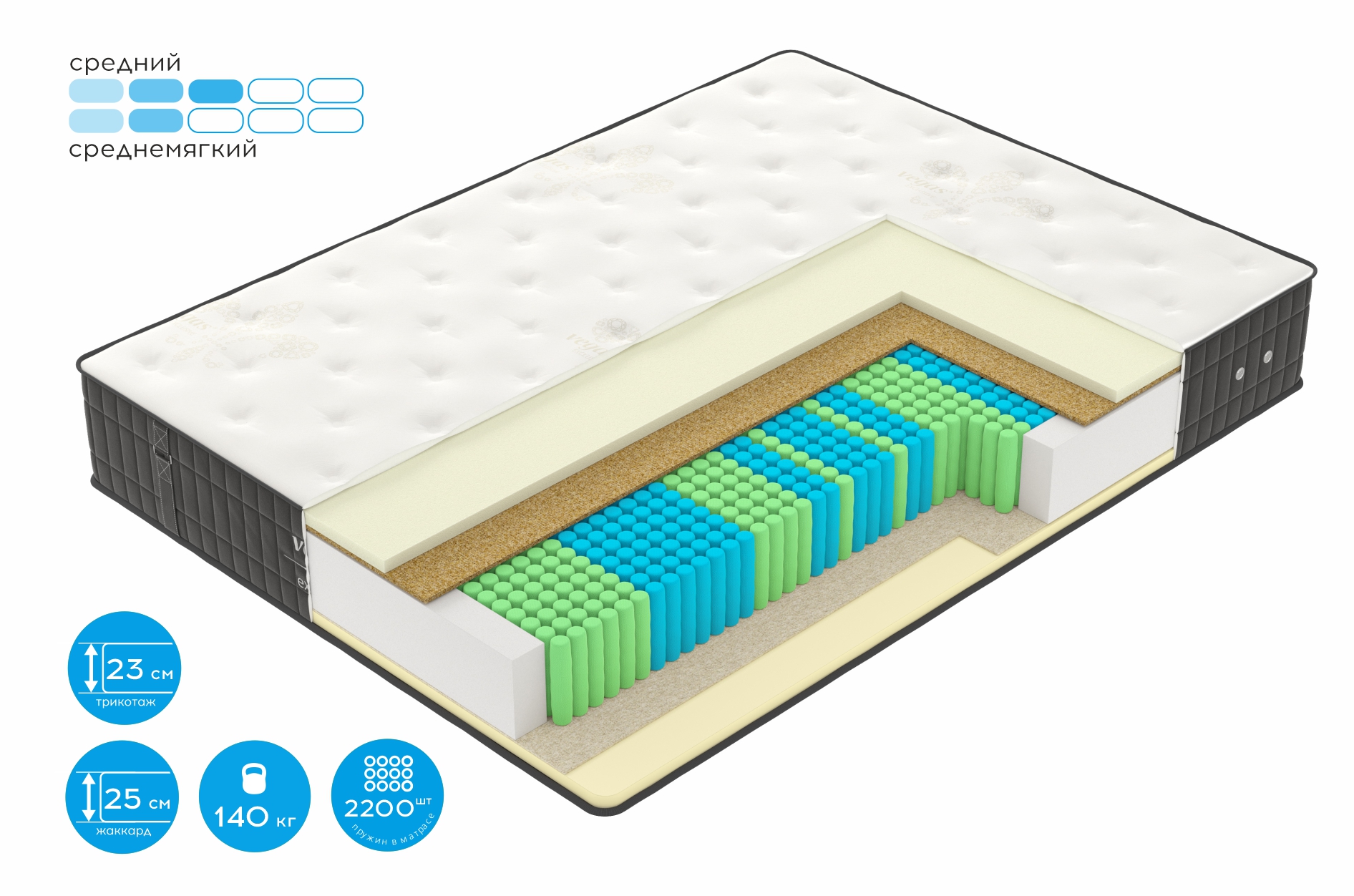 • комфортная разница в жесткости сторон (средний / среднемягкий);