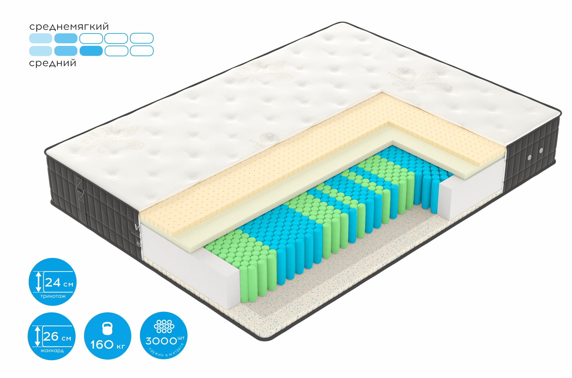 • комфортная жесткость сторон (средний / среднемягкий);