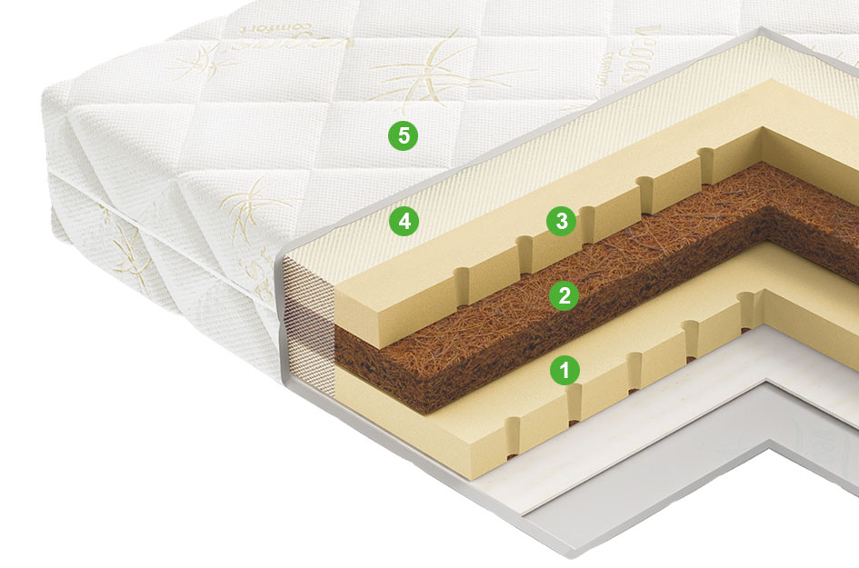 Наматрасник из двух слоев эластичного латекса и слоя кокосовой койры. Предназначен для увеличения высоты постели.